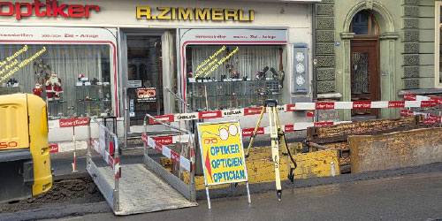 Trotz Baustelle vor Zimmerli Optik sind wir wie gewohnt zu unseren Öffnungszeiten gerne für Sie da!